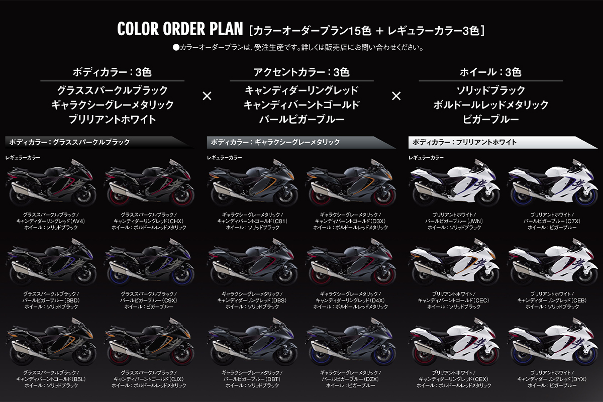 さらに注目なのが新たに設定されたスペシャルエディションだ。通常モデルとは一線を画す特別色「パールビガーブルー」を採用。パールビガーブルーとホワイトを組み合わせたカラー構成は、ハヤブサの流麗なフォルムと空力デザインをより際立たせている。タンク上にはスペシャルエディション専用のエンブレムを装着し、タンクサイドの「SUZUKI」ロゴは立体エンブレムを採用。サイドカバーのベゼルとアンダーカバーはホワイトとして、力強さだけでなく、フラッグシップモデルらしい上質さも演出する。さらにマフラーエンドとカバーは精悍なブラック仕上げとし、車体全体のスポーティさも強調しているのも見逃せない。